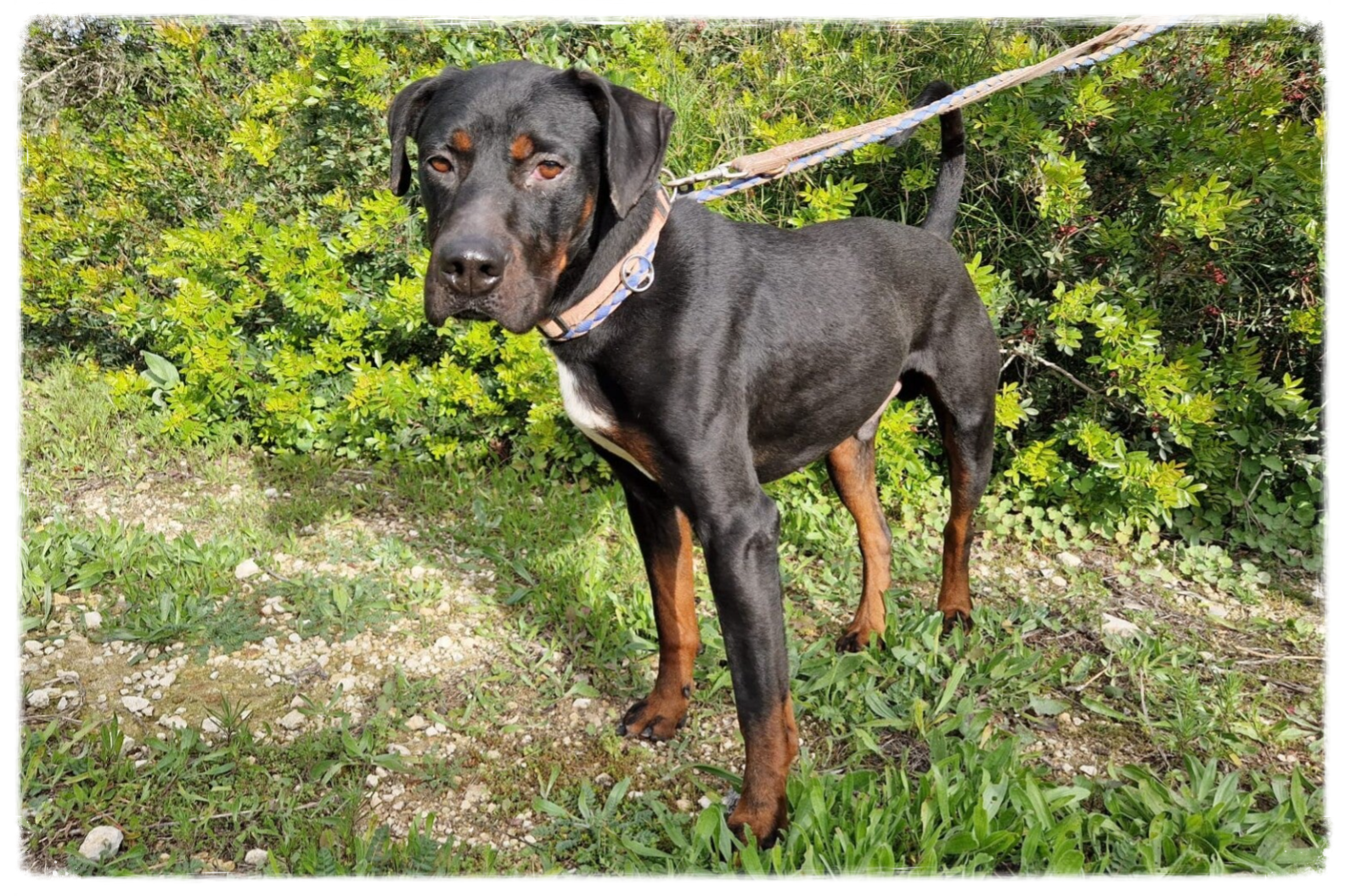 Der bildschöne Rüde geht selbstbewusst durchs Leben und ist dabei freundlich zu Rüden und Hündinnen.